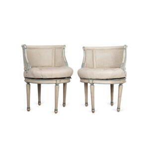 Pair of Rococo Style Carved Oak Tabourets with Gaufraged Velvet and Custom Trim