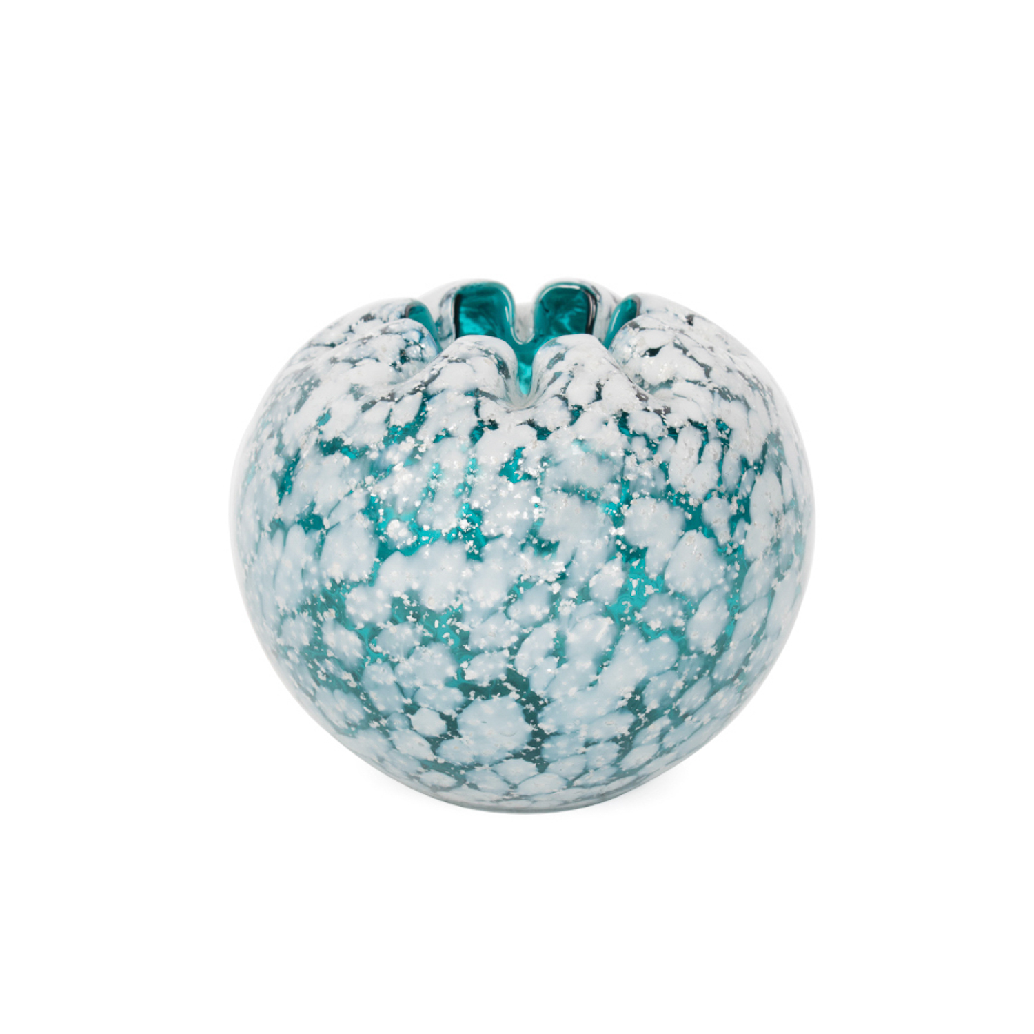 Blue and White Mottled Art Glass Rose Bowl